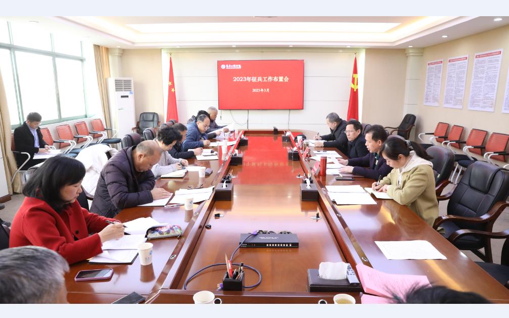 3月2日上午,我校在行政楼300会议室召开2023年征兵工作布置会。校党委副书记、校长汪胜前出席会议并讲话,校党委委员、党委统战部部长欧阳子龙主持会议。