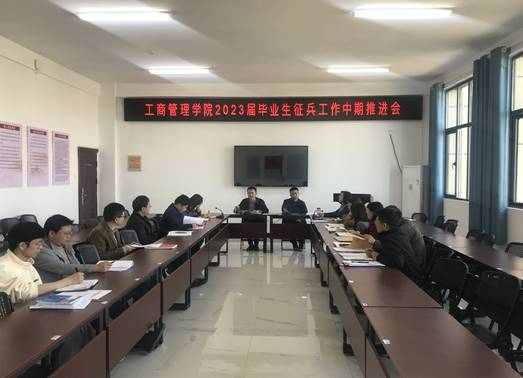 为扎实做好2023届毕业生征兵工作,推动毕业生充分高质量就业,3月14日下午,工商管理学院在济民楼A412召开征兵工作中期推进会,院党委书记高明、院长胡杨成出席,会议由院党委副书记肖斯敏主持。